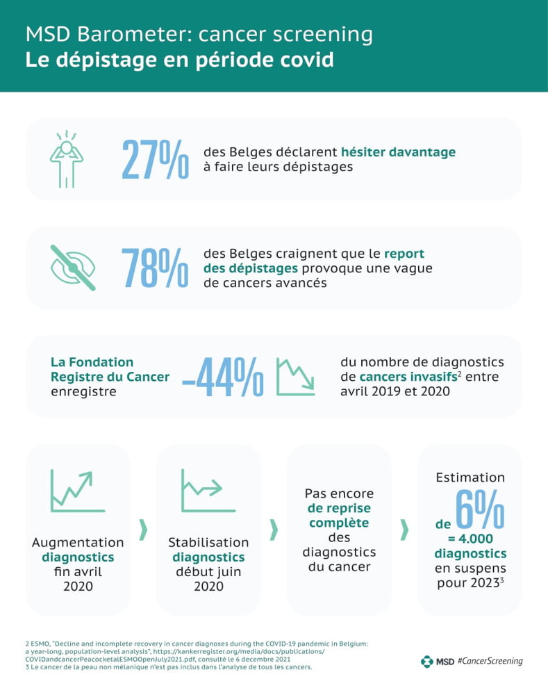 [3] ESMO, “Decline and incomplete recovery in cancer diagnoses during the COVID-19 pandemic in Belgium: a year-long, population-level analysis”, https://kankerregister.org/media/docs/publications/COVIDandcancerPeacocketalESMOOpenJuly2021.pdf ,consulté le 6 décembre 2021